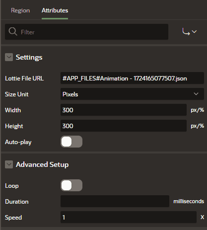 After installing the plugin, adding Lottie animations to your page is easy. Below are the steps to include a Lottie animation using either the Template Component or Region Plugin.